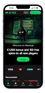 The welcome offer can reach up to €1,000 plus free spins, making it appealing for first time deposits. Payment support is strong, with crypto, credit cards and e wallets all available. BetNinja is popular with players who prefer simple navigation and clean visuals rather than overly busy layouts.