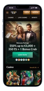 CrownPlay deserves a place among the Best online casinos in Canada due to its massive content offering and polished interface. The casino lists more than 8,000 games, covering slots, tables, live casino rooms and a complete sportsbook. The site layout is modern and responsive, making it easy for new players to navigate.